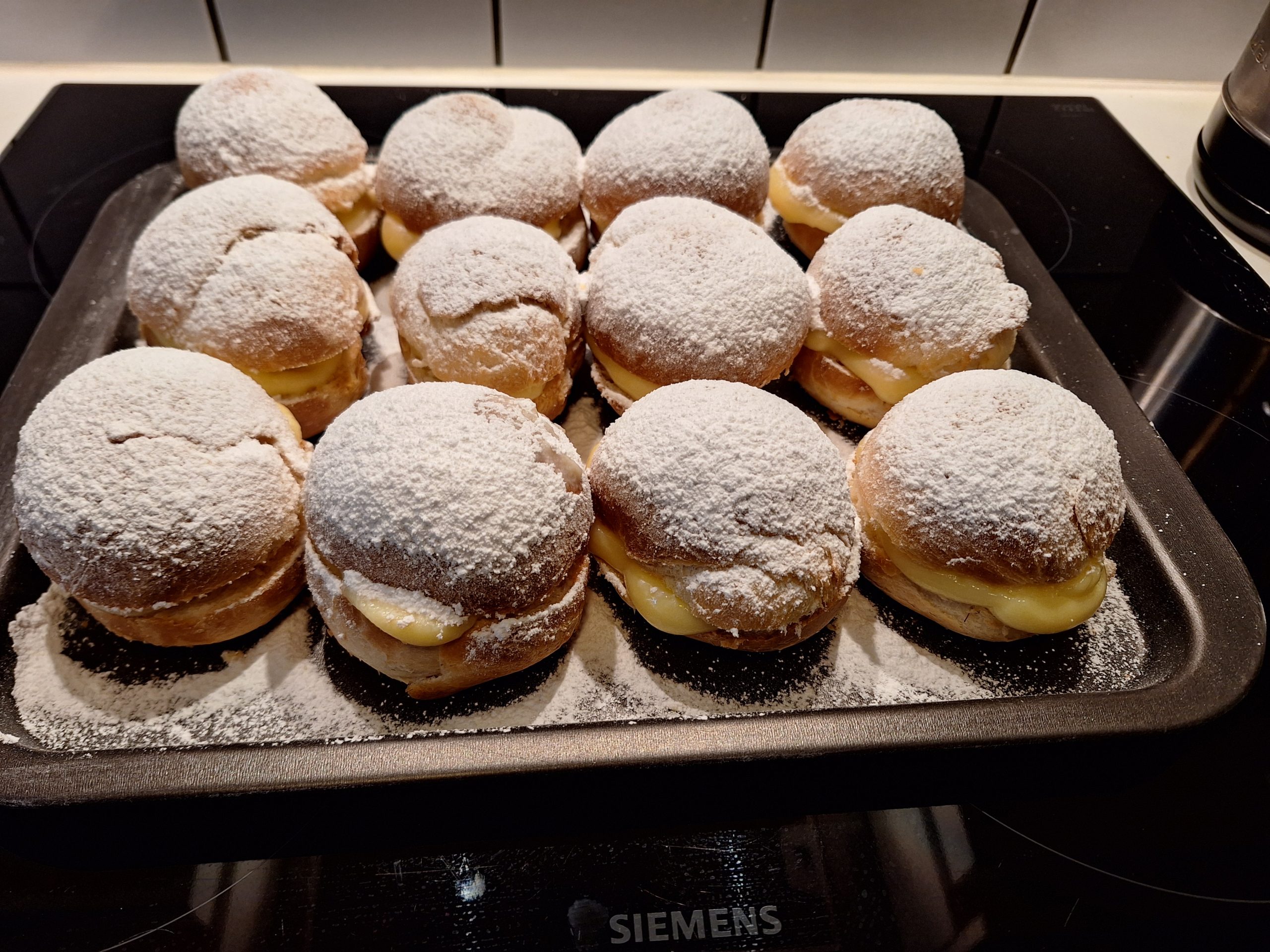 Berlinerbollen, Berlijnse bollen, Berliner bollen of Boules de Berlin (vooral in Vlaanderen gangbaar) zijn ronde lekkernijen die van gefrituurd gistdeeg gemaakt zijn en met banketbakkersroom of confituur worden gevuld. Deeg : 500 g bloem120 g boter30